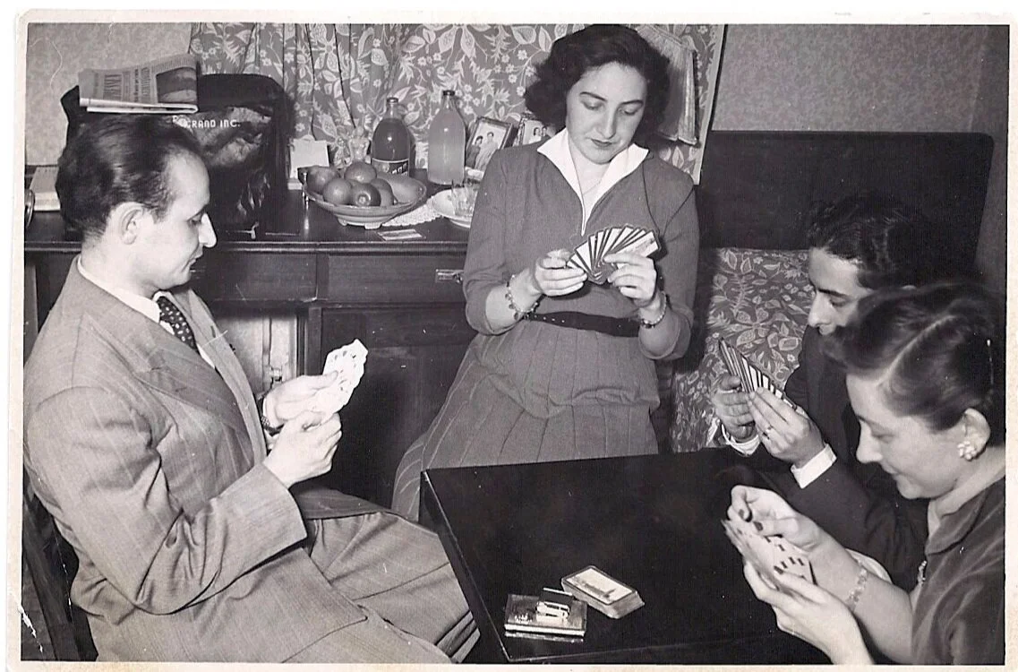 Rachel (second from left) practicing for a bridge tournament, 1953. (Rachel and her partner won first place in a hundred-person tournament.)