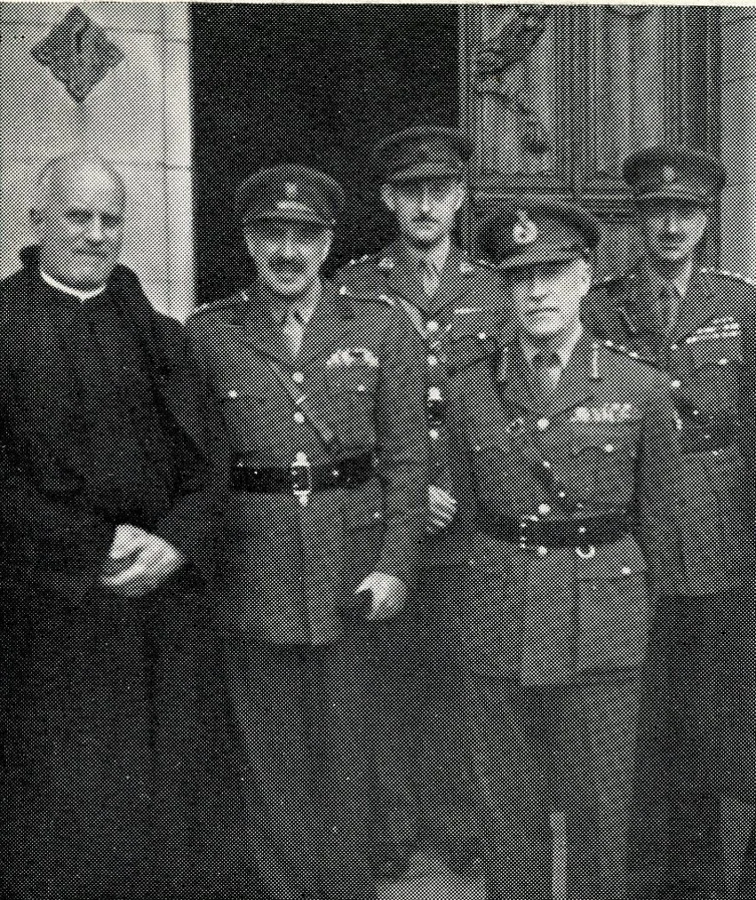 1944. H. L. Glyn Hughes, second from left. Richard O'Connor, 8 Corps Commander, front row, right. At Worth Priory, West Sussex--a place of intelligence gathering and planning for the Normandy landing. Courtesy of the Abbott and Trustees of Worth Abbey/the Worth School.